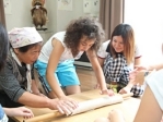 東京に移動し、東京海上ビジネスサポート株式会社のご協力を得て、同社の障害を持つ社員の方から、千代紙人形がついたお箸袋の作り方を習いました。障害者の方が社会の中で活躍している様子が印象的でした。この夜、パレスチナ人参加者は帰国。イスラエル人参加者、日本人参加者全員で成田空港まで見送りに行き、別れを惜しみました。