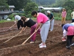 そして今年も、毎年お世話になっている守重敏夫さん、広子さんご夫婦の畑でそばの種まきを行いました。鍬で畝を作り、種をまき、土をかぶせる、という畑作業です。このそばは、2011年の参加者がまき、秋にスタッフが収穫したものです。同じように、2013年の参加者がまた今年蒔いたこのそばの種をまく予定です。慣れないながらも、自然のつながりを感じながら一生懸命作業しました。