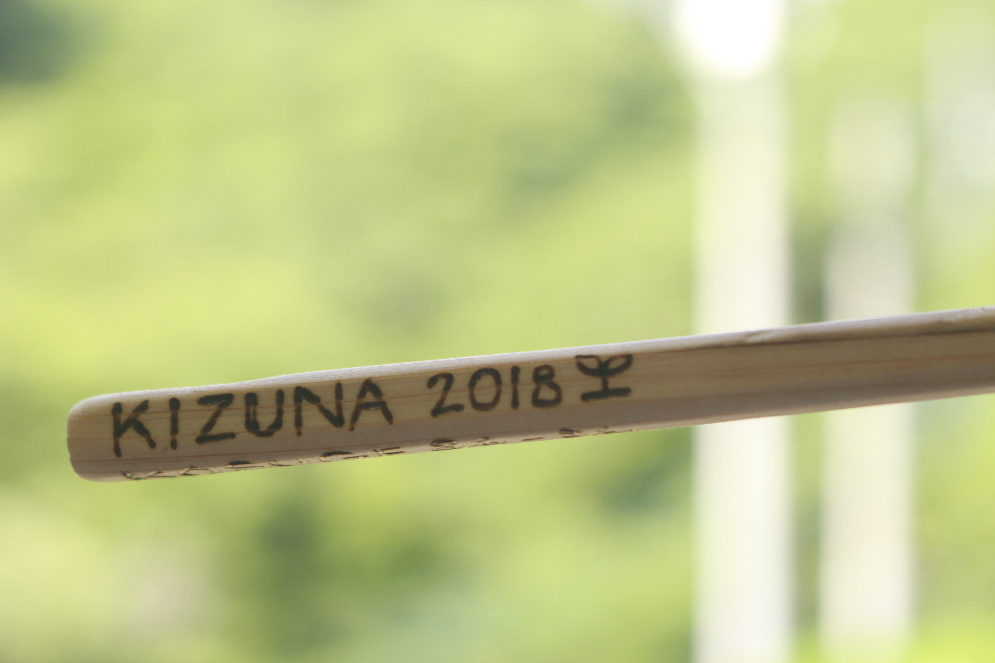 午前中は、新聞紙を利用しての新聞紙バッグ作り。プラスチックゴミの削減が世界的な課題になっている中、レジ袋の削減に貢献できると、行動計画に取り入れる参加者も多かったです。その後はそば打ち体験。2017年の参加者が蒔いて、秋に日本人参加者や学生スタッフが収穫したそばを使ってのそばうちです。普段、パンやピザ生地を作っている参加者も多く、守重さんが愛情をこめて育てた野菜のてんぷらと一緒に食べるそばに舌鼓を打っていました。箸作り体験では、多摩源流こすげの寺田さんの指導により、小菅伝統の箸の作り方で挑戦。かんなの扱いに苦労しながら、最後に焼きペンで名前やイラストを入れて完成。大事そうに持ち帰りました。そして、そば粉を使ったせんべい作りにも挑戦。生地を丸める、焼型で焼く、焼印を押すという工程で、リズムとチームワークが必要です。焼きあがったそばせんの美味しさは格別だったようです。たくさん作ったそばせんが、あっという間になくなりました。